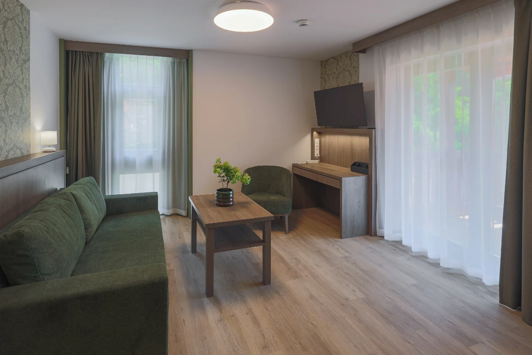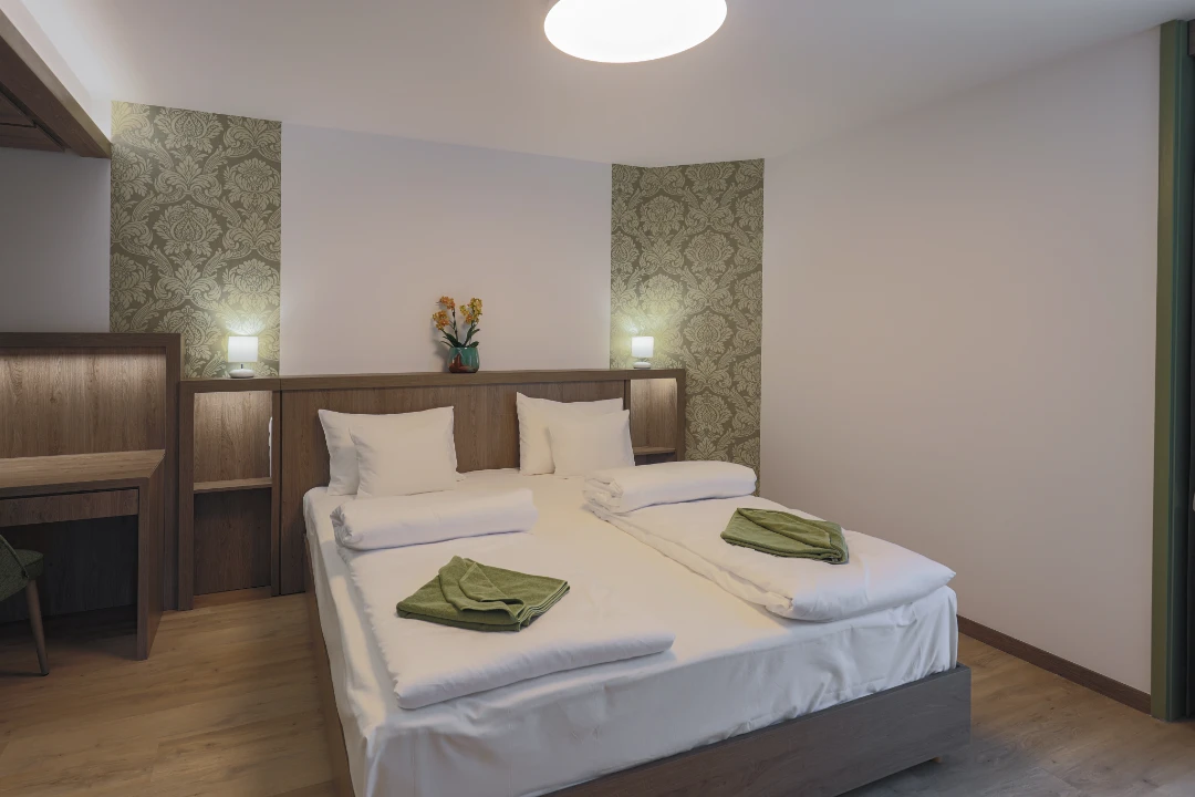 Hotelul nostru este absolut prietenos cu copiii. Așteptăm cu drag familiile cu copii mici și mari. Oferim pentru ei apartamentele noastre, unde putem găzdui până la 2 copii (pe canapeaua extensibilă) și un bebeluș (într-un pătuț potrivit până la vârsta de 4 ani). Suntem bucuroși să găzduim și mai mulți copii, dar pentru aceștia va trebui să faceți o rezervare pentru o cameră separată.